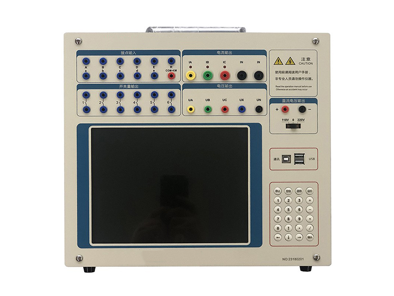 2.單機獨立運行,裝置通過大屏幕觸摸液晶顯示屏進行操作,中文顯示。可完成現場大多數試驗檢定工作,可對各種繼電器(如電流、電壓、反時限、功率方向、阻抗、差動、低周、同期、頻率、直流、中間、時間等)及微機保護進行檢定,并可模擬各種復雜的瞬時性、永久性、轉換性故障進行整組試驗。